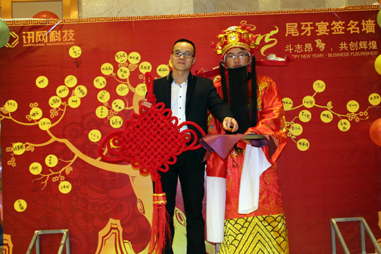訊網科技作為一家具有互聯網精神的企業,尾牙晚宴不僅是必須的,而且要更HIGH才對!2015年2月6日晚,訊網科技”斗志昂羊,共創輝煌“2014年尾牙晚宴于泉州豐澤大酒店隆重舉行。訊網科技全體員工、兄弟企業淘鞋網及敦煌線業共同參加了本次晚宴。