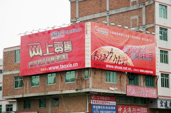 為擴(kuò)大環(huán)球鞋網(wǎng)和淘鞋網(wǎng)的品牌知名度,讓更多人了解環(huán)球鞋網(wǎng)和淘鞋網(wǎng),繼晉江主要路段投放20多面廣告后,公司在晉江鞋都又投放了兩塊大型廣告牌。