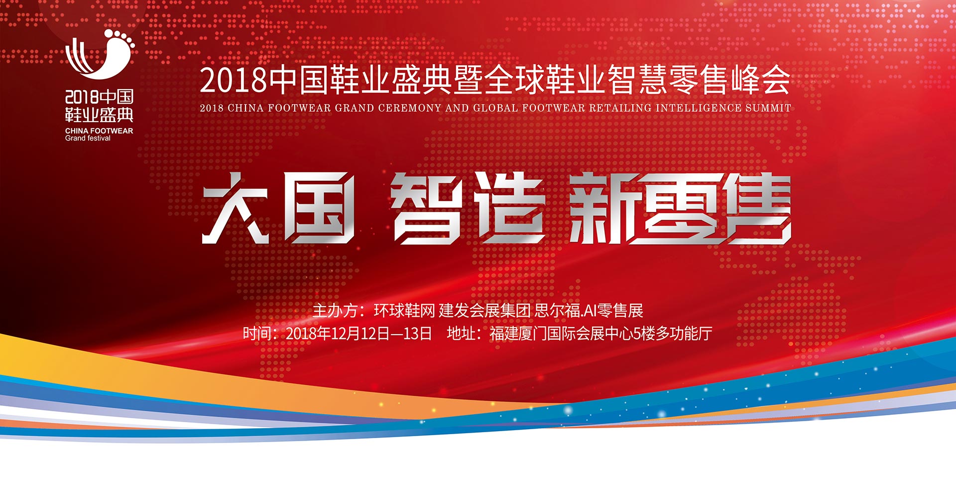 2018中國鞋業盛典,以“大國·智造·新零售”為主題,設置多個場景,特邀20多位行業大咖,闡述他們對中國制鞋業未來發展新趨勢、新技術的思考、踐行和引導,并通過400多位行業精英,傳向中國的制鞋版圖。