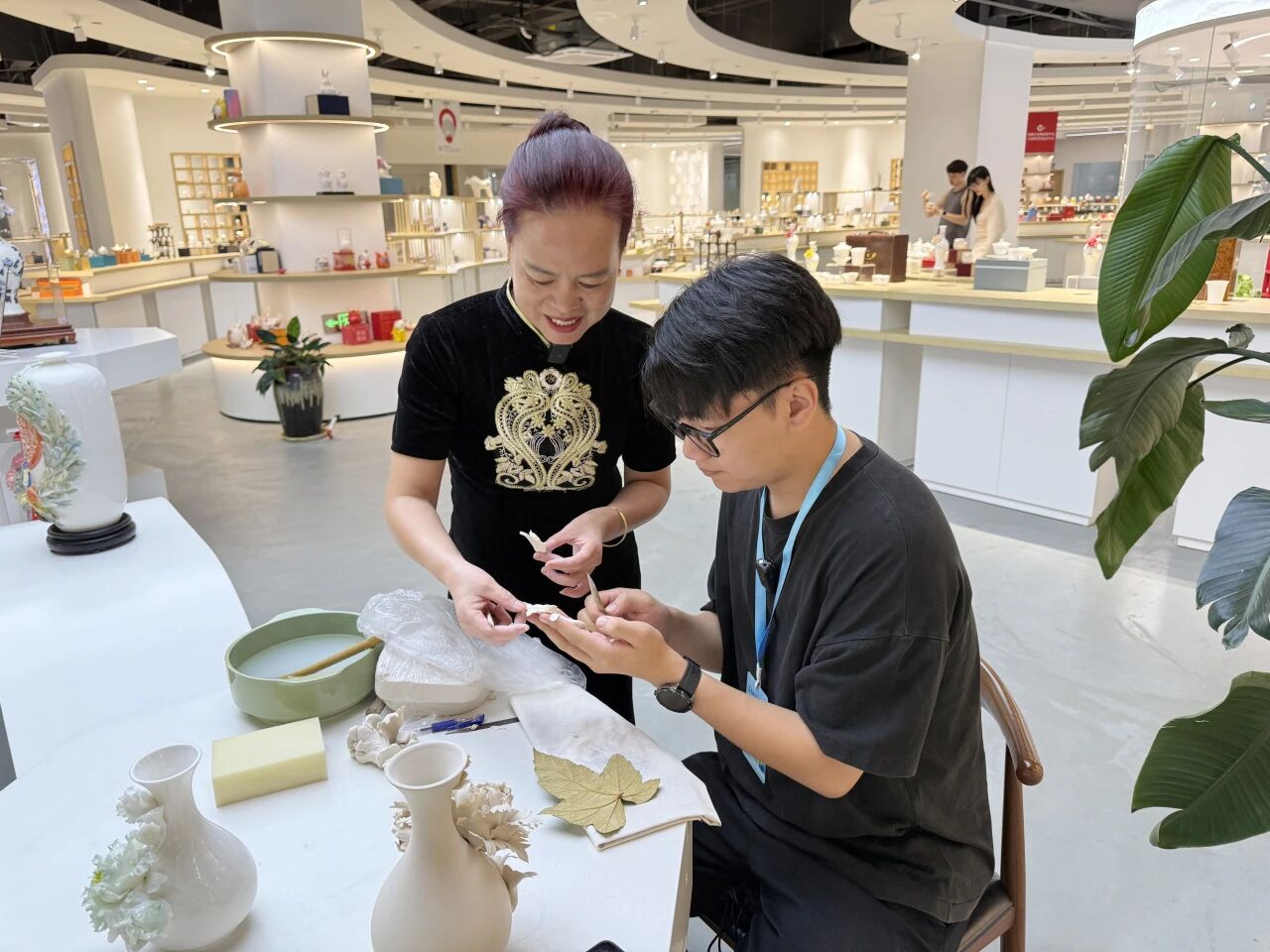 選品中心內(nèi)設(shè)有多個(gè)7×24共享直播間,以“直播帶貨+線下體驗(yàn)+技藝展示”融合模式,創(chuàng)下單場銷售額破百萬的業(yè)績。非遺大師現(xiàn)場演示創(chuàng)作,既直觀展現(xiàn)德化陶瓷精湛工藝,也增強(qiáng)了消費(fèi)者對傳統(tǒng)技藝的認(rèn)知與信任。這種沉浸式、體驗(yàn)式營銷的轉(zhuǎn)化率比傳統(tǒng)方式高出30%,有效推動了傳統(tǒng)工藝的現(xiàn)代化傳播和商業(yè)轉(zhuǎn)化。